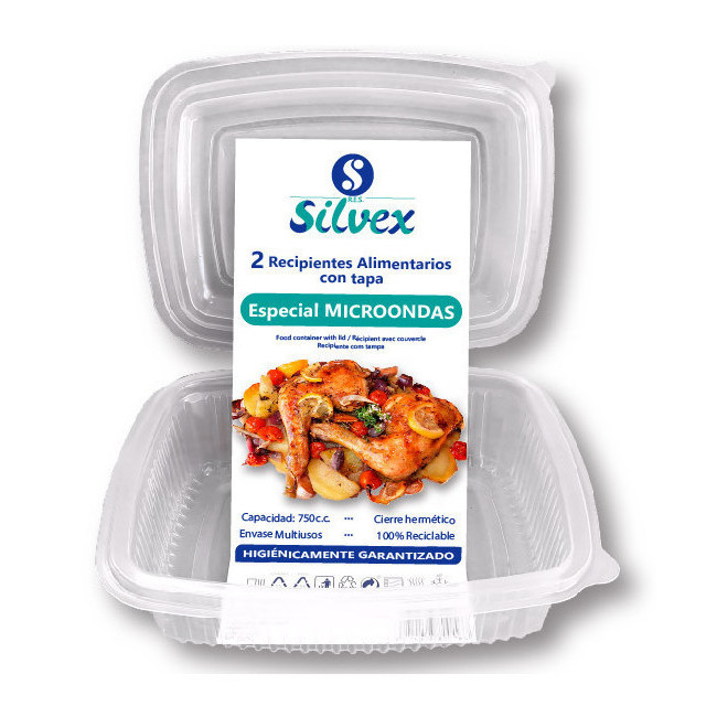 0,75 L Einwegbehälter mit Scharnierdeckel - 2 Stück.