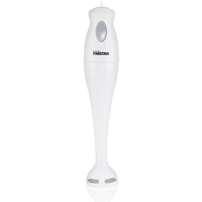 Einfacher und effizienter weißer Stabmixer, mit dem Sie Suppen, Saucen, Smoothies und andere Ideen zubereiten können. Er verfügt über einen Haken zum einfachen Aufhängen und Aufbewahren.