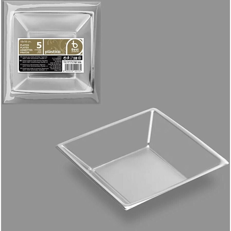 18 cm tiefe Kunststoffteller versilbert - 5 Stück.