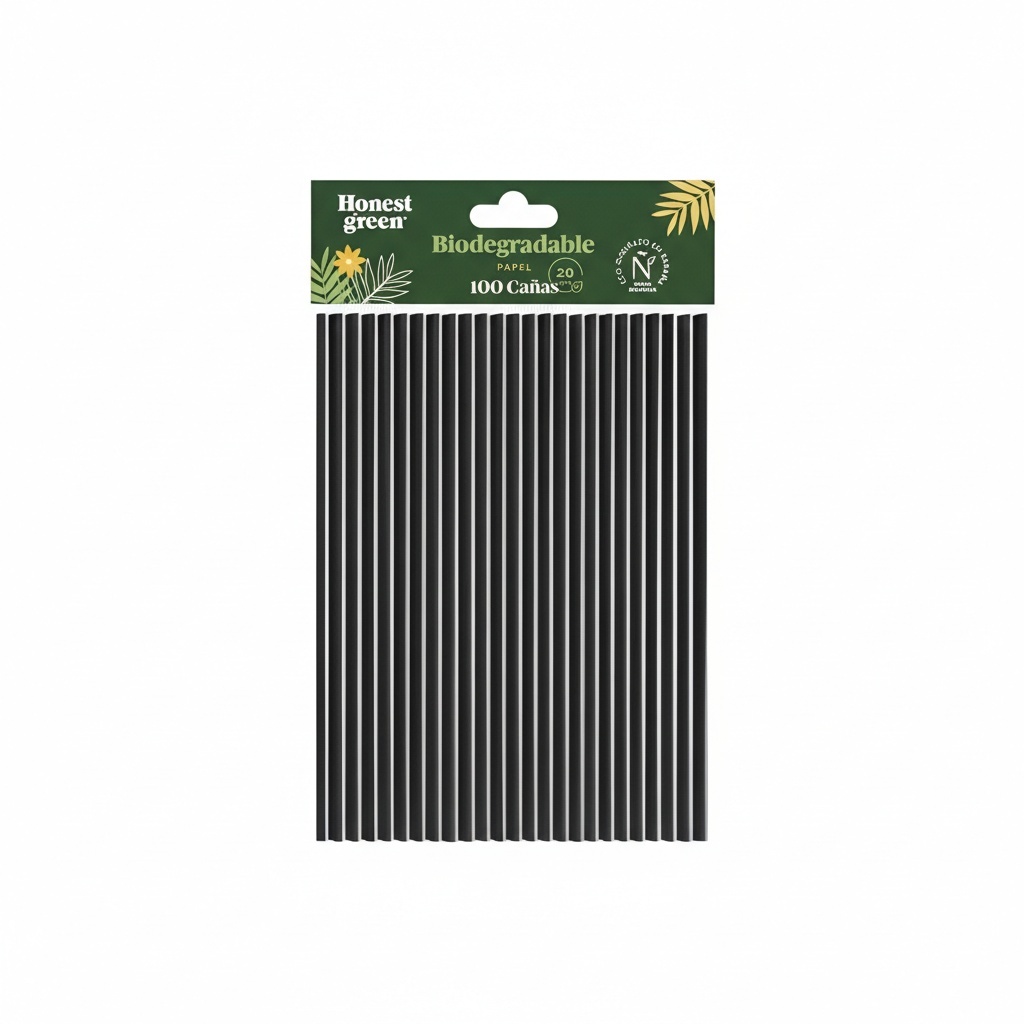20 cm biologisch abbaubare Papierstrohhalme - Honest Green - 100 Stk.