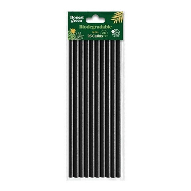20cm schwarze biologisch abbaubare Papierstrohhalme - Honest Green - 25 Stk.