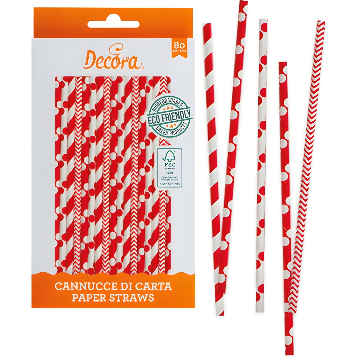 21 cm biologisch abbaubare Papierstrohhalme - Decora - 80 Stück.
