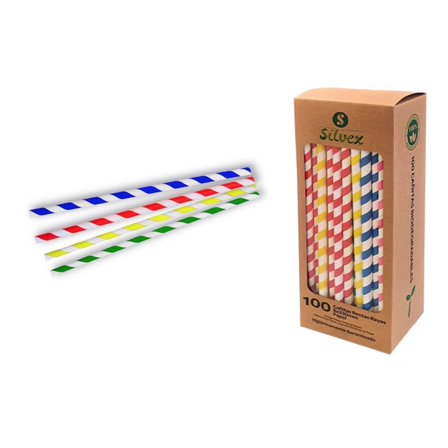 23 cm biologisch abbaubare Chevron-Papierstrohhalme - 100 Stück.
