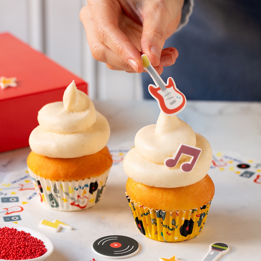 - Dieses Set aus zweidimensionalen Zuckerdekorationen ermöglicht es Ihnen, Ihre Cupcakes einfach und originell zu verzieren.