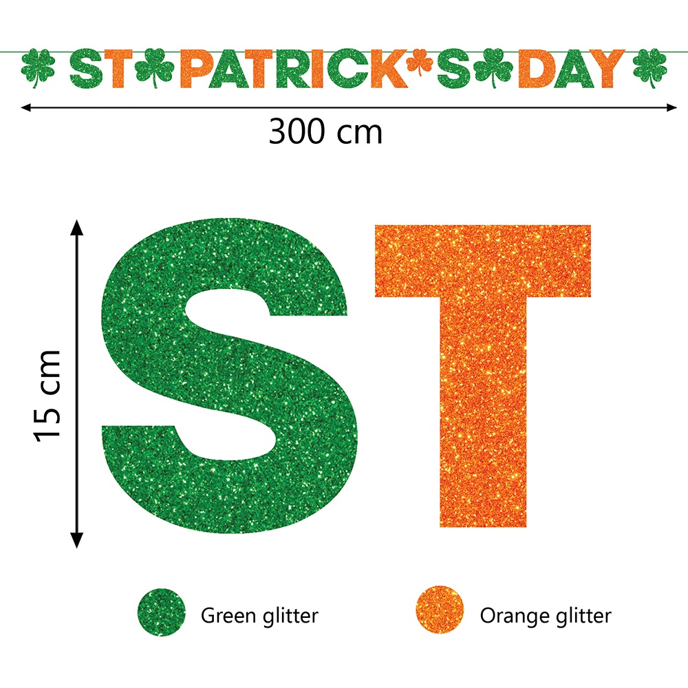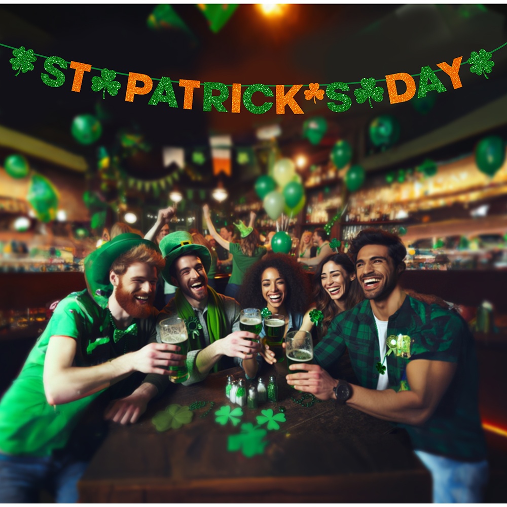 - Ausgeprägtes Motiv: große Buchstaben und dekorative Kleeblätter für ein authentisches St.-Patrick-Ambiente.