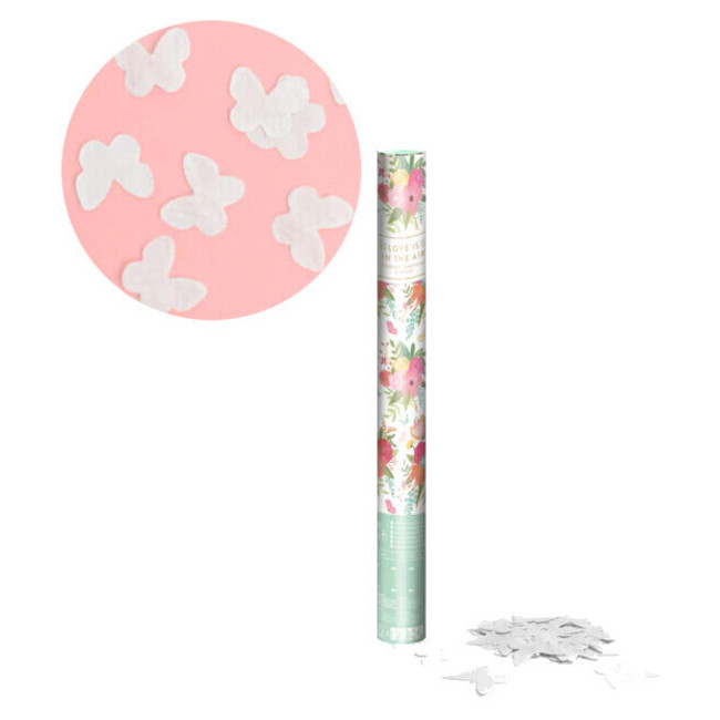 50 cm Konfetti-Kanone mit weißen Schmetterlingen