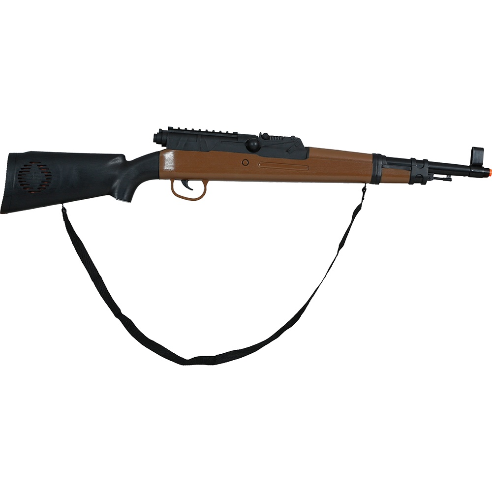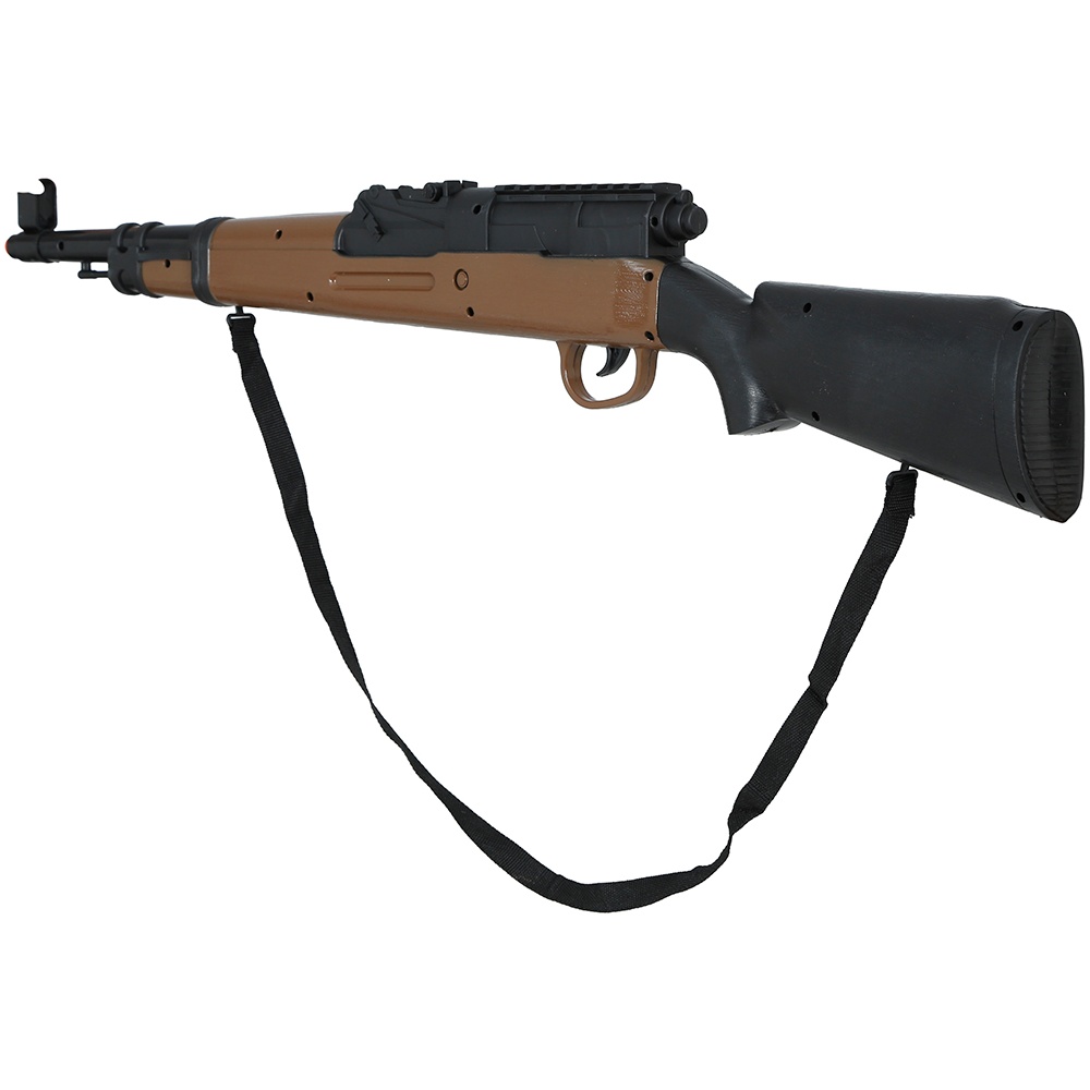 Replik eines Gewehrs, inspiriert von Modellen des Zweiten Weltkriegs - ideal, um Ihre Kostüme und Szenen zu komplettieren. Die Replik ist etwa 70 cm lang und verfügt über eine holzimitierende Oberfläche sowie metallisch wirkende Details; die orangefarbene Mündung ist deutlich sichtbar. Hergestellt aus leichtem PVC für einfachen Einsatz bei Events und Fotoshootings und mit integriertem Trageriemen für mehr Komfort und Realismus. Perfekt für Karneval, Theater, historische Nachstellungen und Photocalls.