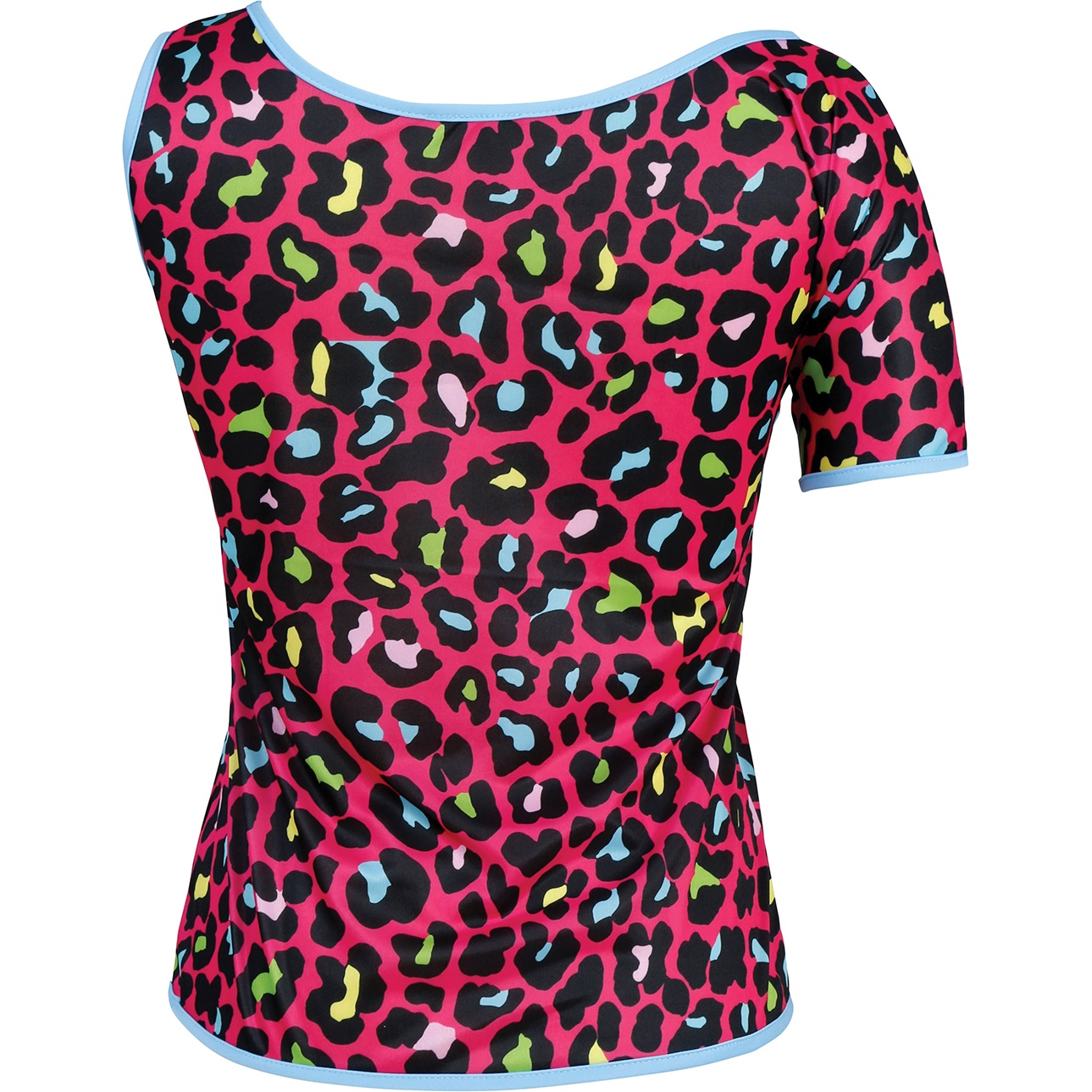 Dieses vom 80er-Jahre-Stil inspirierte T-Shirt mit neonfarbenem Leopardenmuster zieht alle Blicke auf sich. Der bequeme Kurzarmschnitt ist ideal für Erwachsene, die einen verspielten, retro-inspirierten Look suchen. Der leichte Polyesterstoff sorgt für Tragekomfort und einen vorteilhaften Fall. Kombinieren Sie es mit Neon-Accessoires, Leggings oder Vintage-Röcken für ein auffälliges Party-Outfit. Bringen Sie Ihre Feier mit einem farbenfrohen 80er-Touch zum Leben.