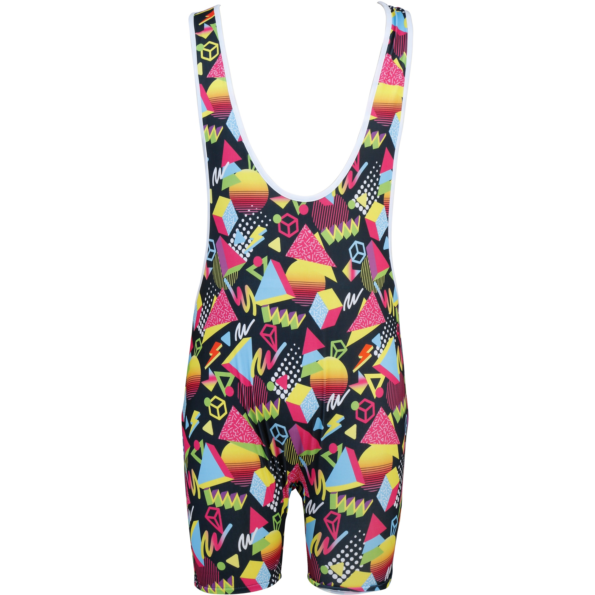 80er-Neon-Einteiler im Retro-Look. Geometrisches Design und Neonfarben, die die lebhafte Atmosphäre der 80er wiederaufleben lassen. Der figurnahe Schnitt mit breiten Trägern und ausgeprägtem Ausschnitt betont die Figur. Hergestellt aus elastischem Polyester für einen angenehmen Sitz und uneingeschränkte Bewegungsfreiheit. Perfekt, damit Sie bei Mottopartys, Fotoshootings und Retro-Events hervorstechen.