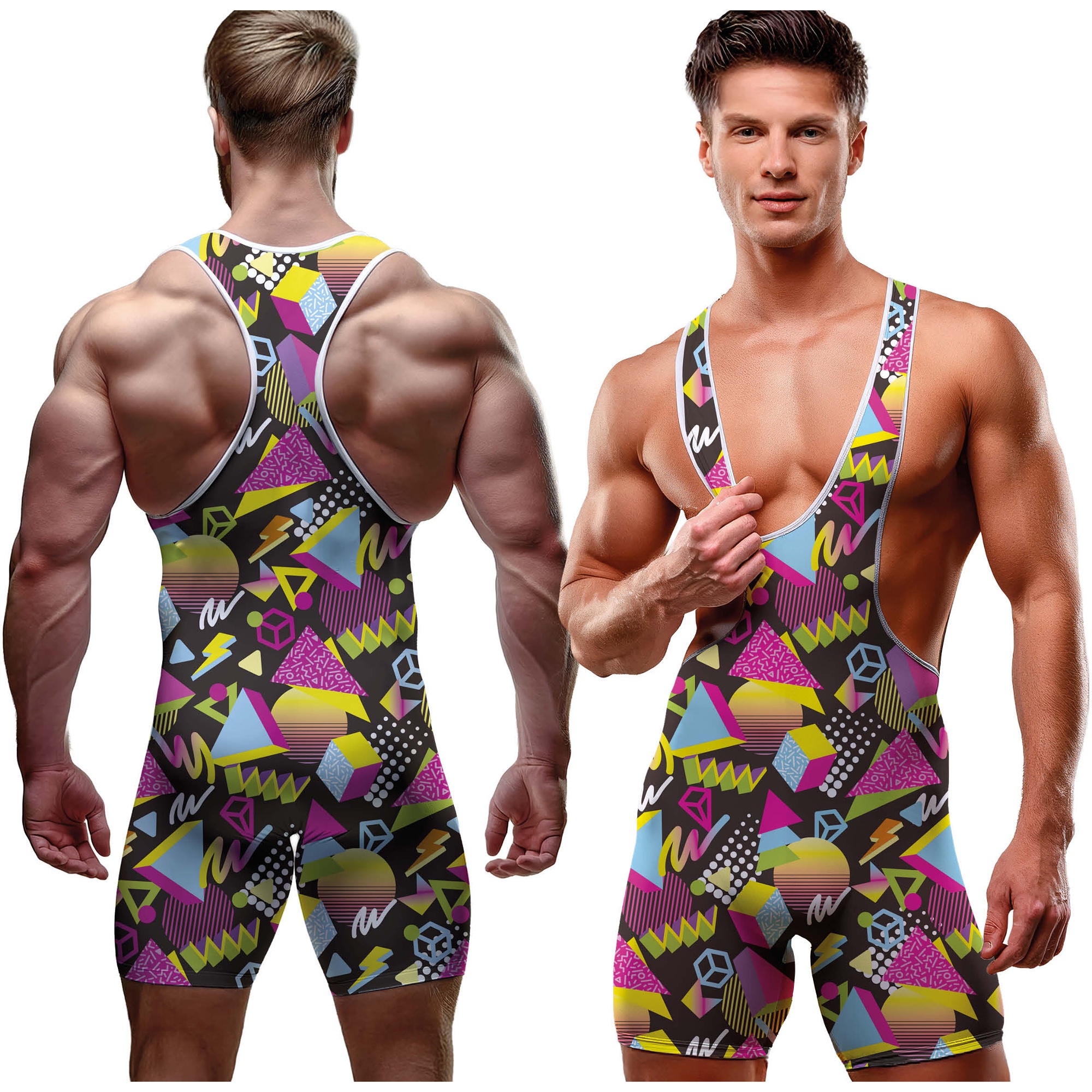 - Neon-geometrisches Muster im 80er-Stil für einen auffälligen Look.