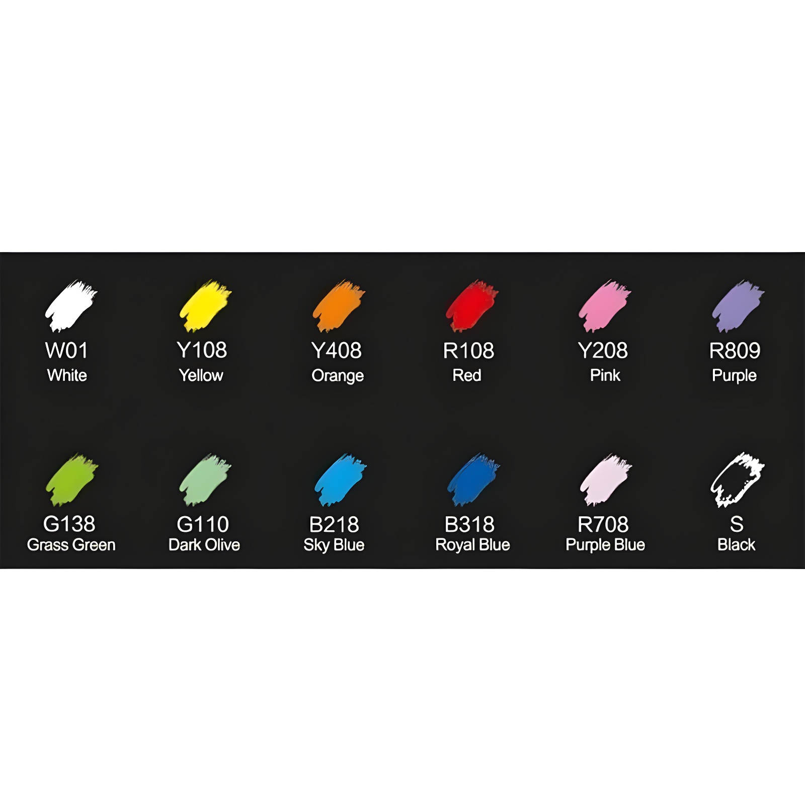 - Set mit 12 wasserbasierten Acrylmarkern.