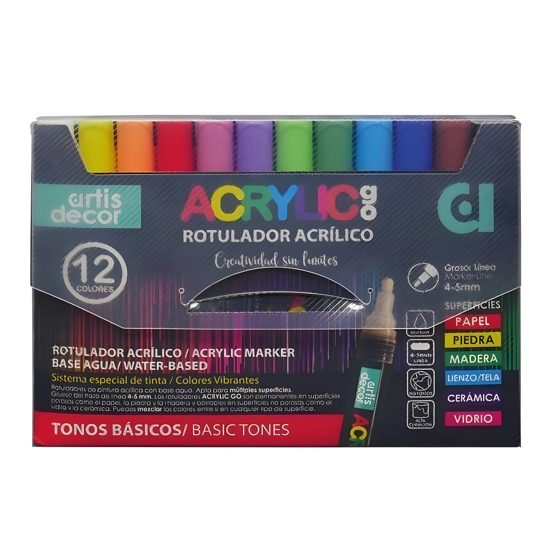 Acrylic Go Acrylmarker 4-5 mm, Grundfarben - Artis Decor - 12 Stück