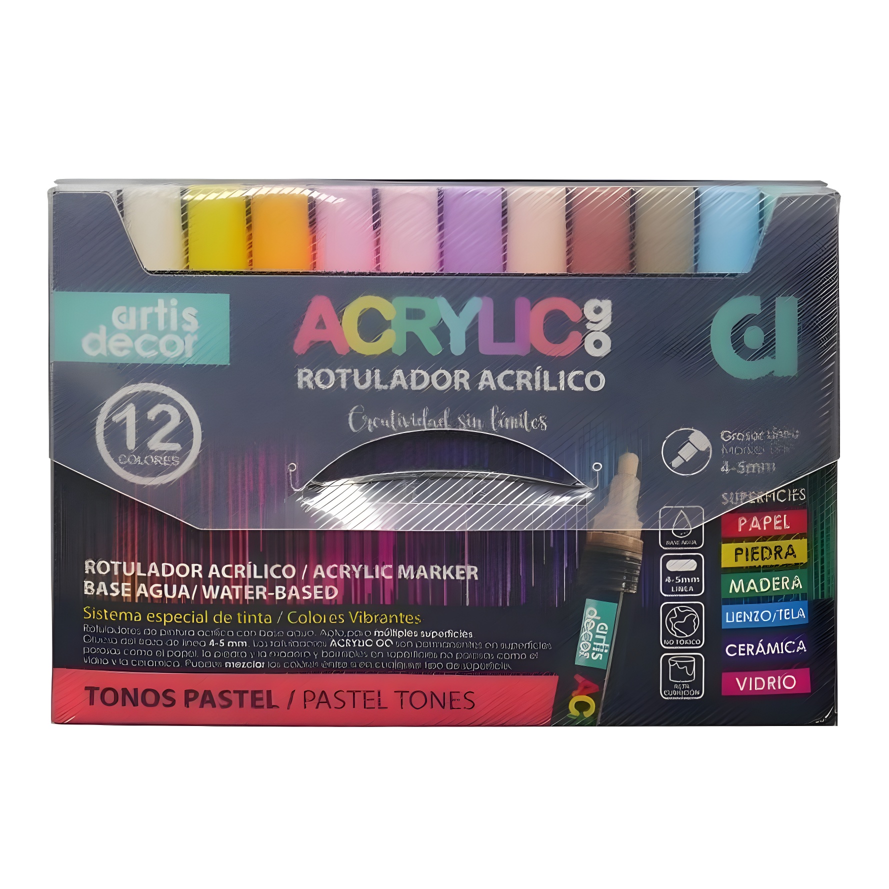 Acrylmarker Acrylic Go 4-5 mm Pastelltöne - Artis Decor - 12 Stück