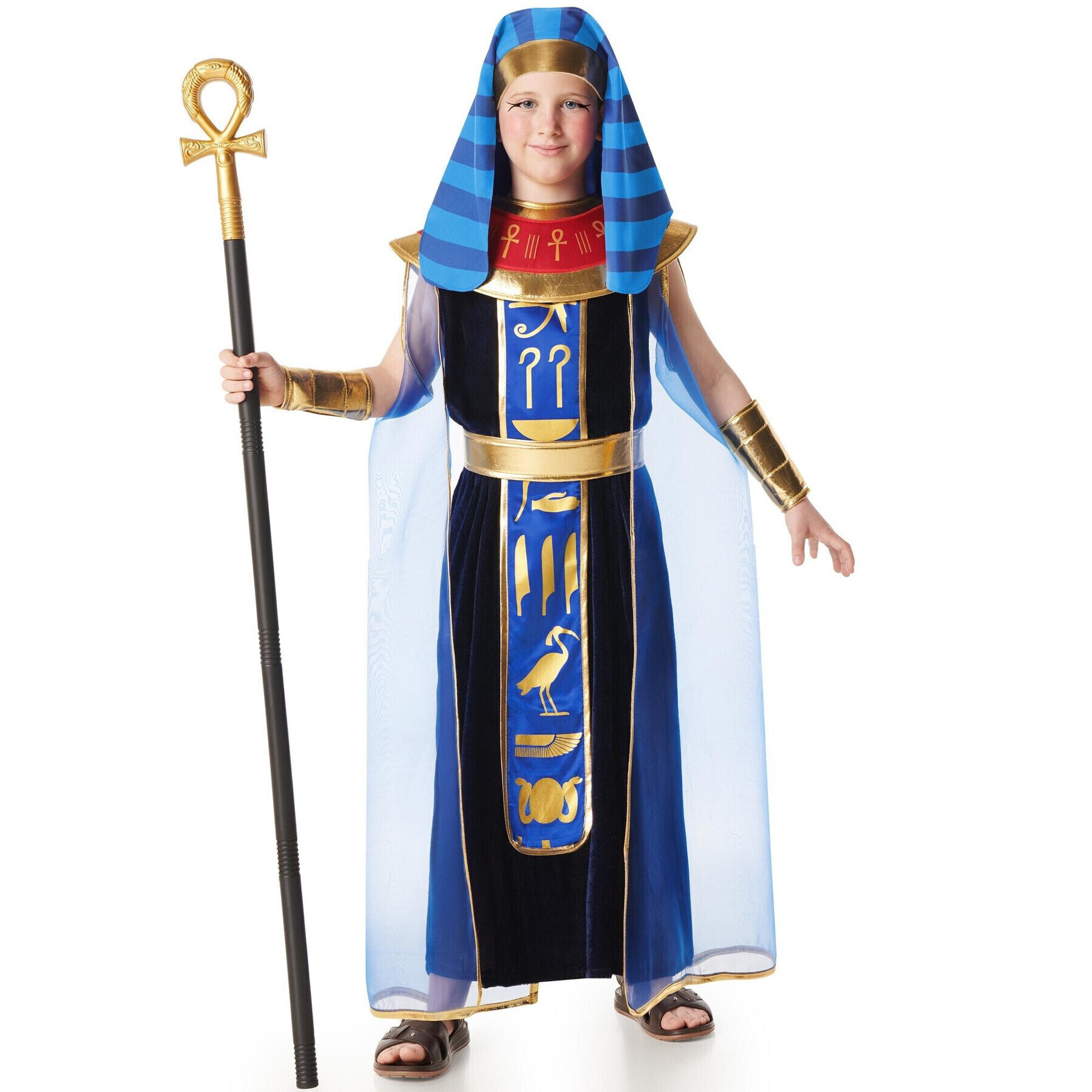 Ägyptisches Pharaonenkostüm aus blauem Samtimitat für Kinder