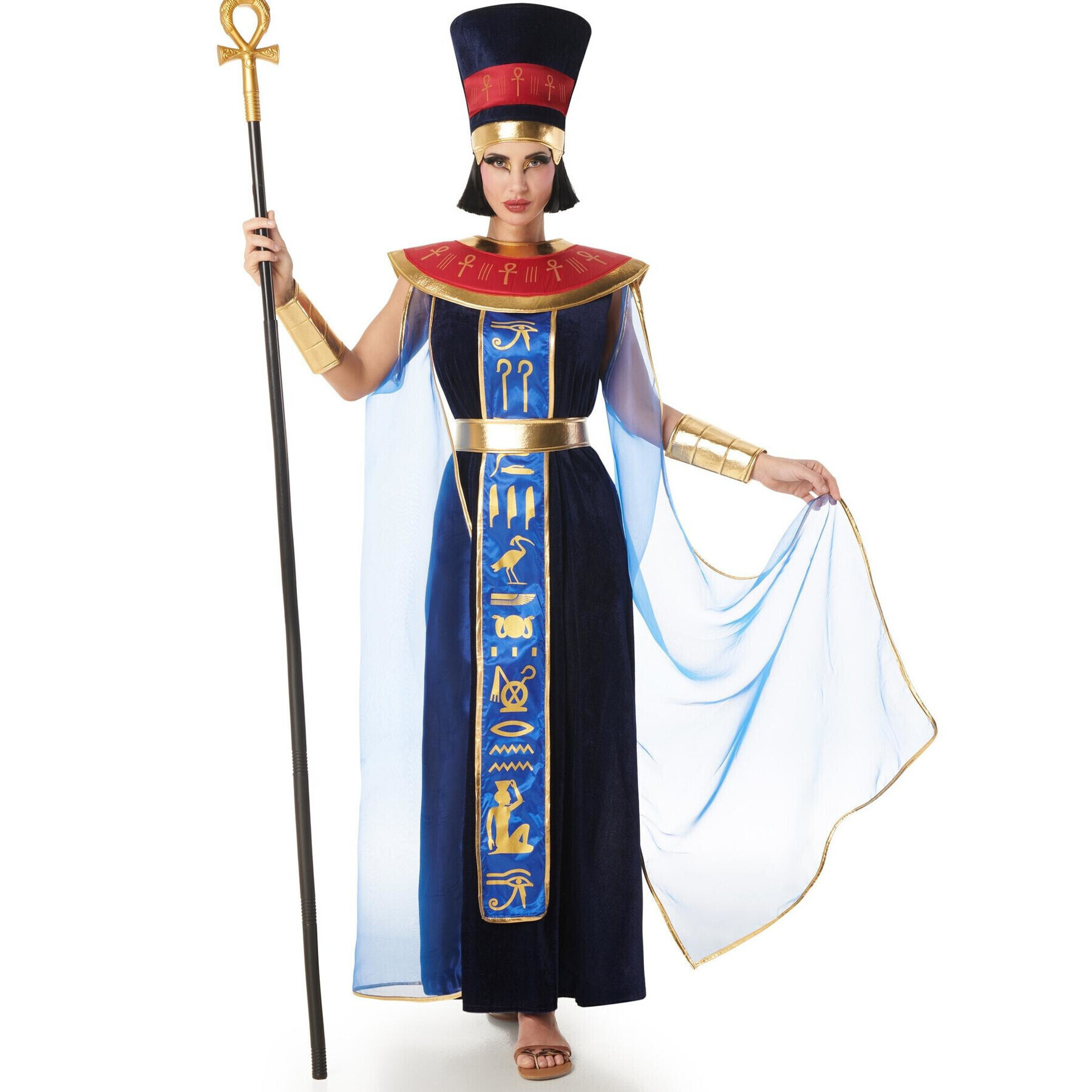 Beeindruckendes ägyptisches Pharaoninnen-Kostüm für Damen mit samtähnlichem Stoff. Ideal, um auf dem Karneval oder jeder Kostümparty Eindruck zu machen.