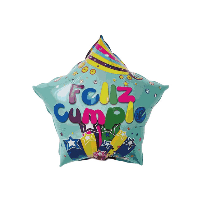Ein sternförmiger Ballon mit farbenfrohem Schriftzug, der Ihnen alles Gute zum Geburtstag wünscht und auf jeder Party, die Sie veranstalten, gut aussehen wird.
