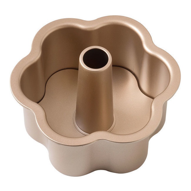 Eine hochwertige Form aus antihaftbeschichtetem Material, mit der Sie süße und herzhafte Leckereien herstellen können. Es handelt sich um eine Form, die zwei verschiedene Verwendungsmöglichkeiten bietet: einen flachen Boden und einen weiteren Boden mit einer Röhre in der Mitte.