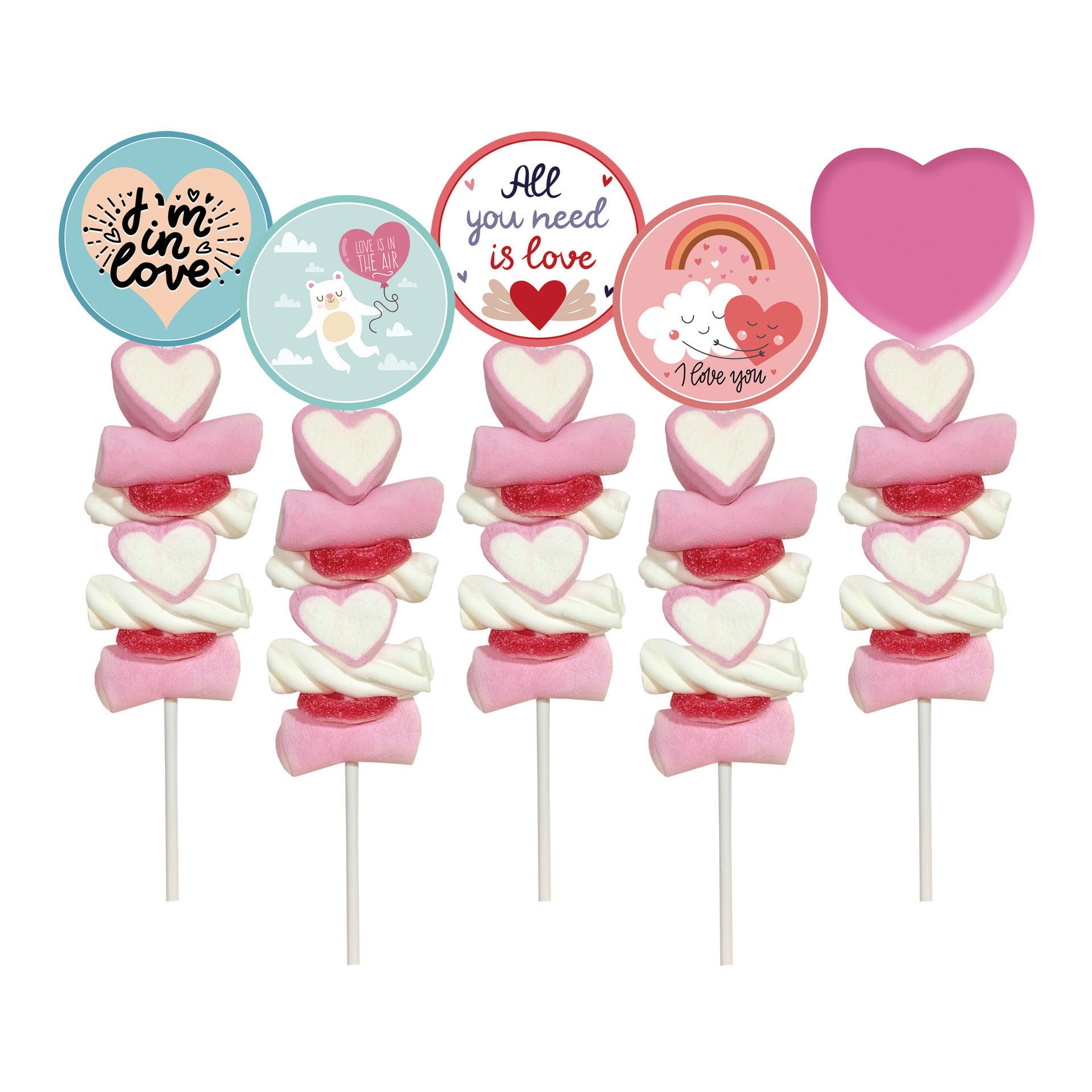 Valentinstag Schaschlik aus sortierten Marshmallows 45 g - 1 Stück