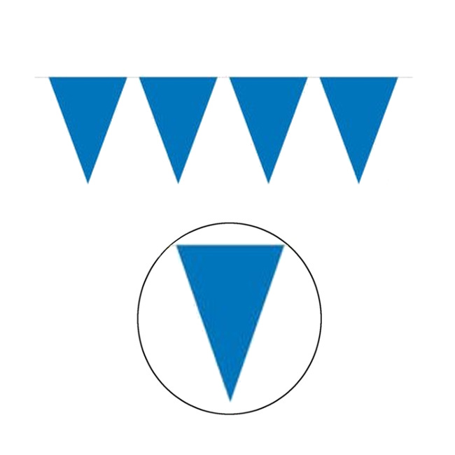 Ein Band mit 12 dreieckigen Wimpeln von 14 cm, die mit einem gleichfarbigen Band verbunden sind. Damit können Sie eine Party oder eine Veranstaltung dekorieren und ihr eine bunte Note verleihen.