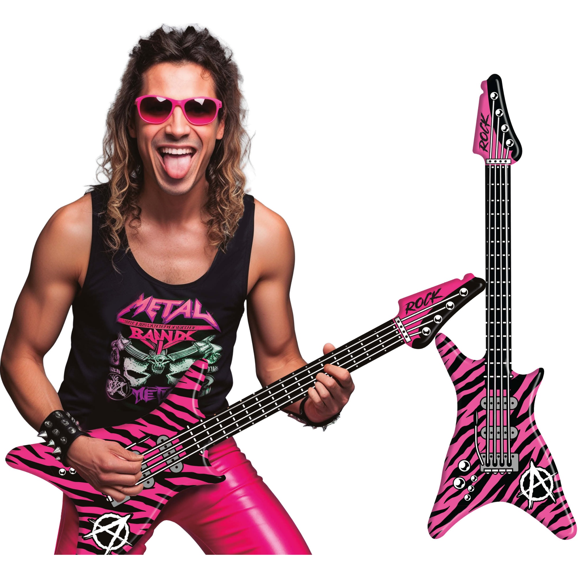 Aufblasbare Rockgitarre, die Ihren Partys und Photocalls Leben einhaucht. Das auffällige pinke Streifenmuster verleiht jedem Event eine verspielte, fotogene Note und sorgt für große visuelle Wirkung - ideal für Junggesellenabschiede, Themenkonzerte, Geburtstage und andere Feiern.