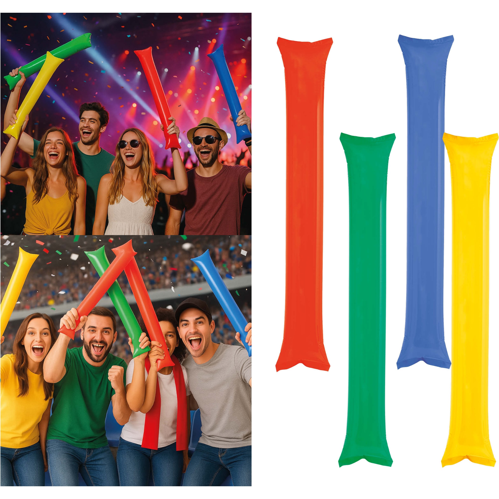 Aufblasbare Kunststoff-Cheer-Sticks, sortiert - 2 Stück