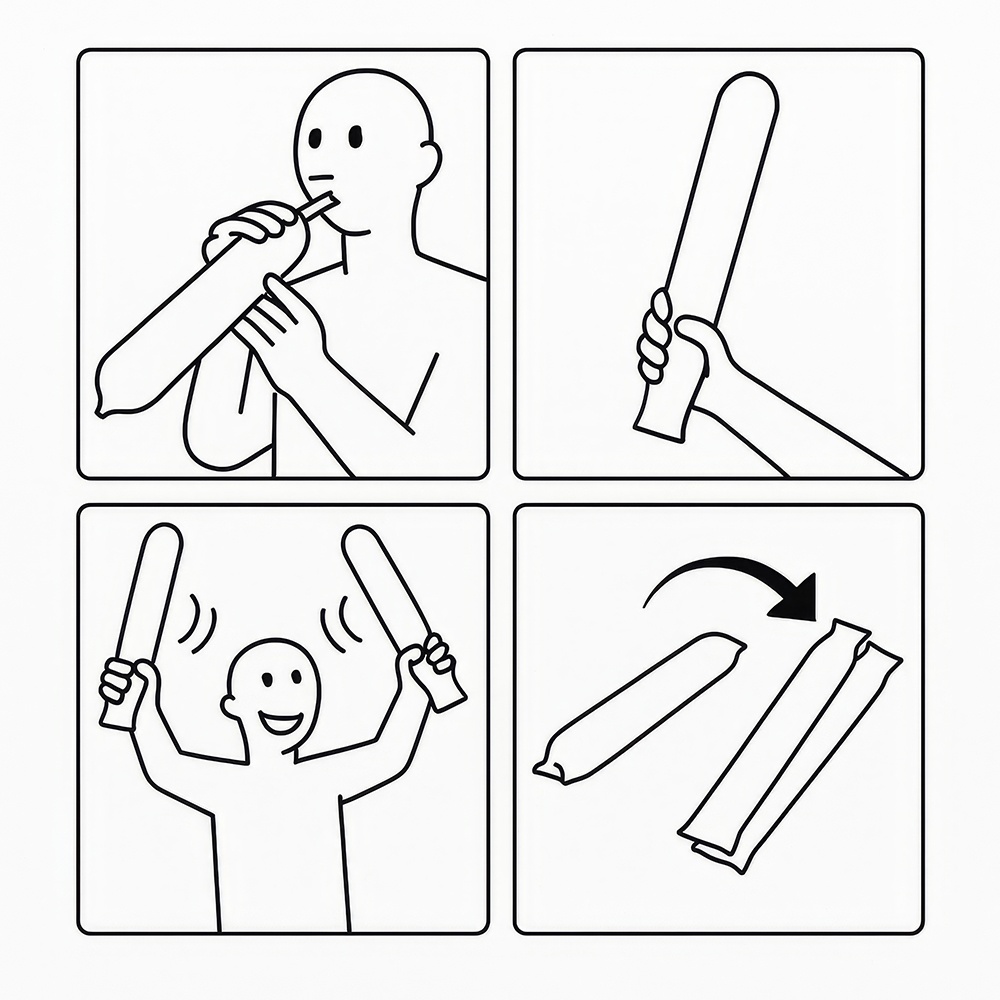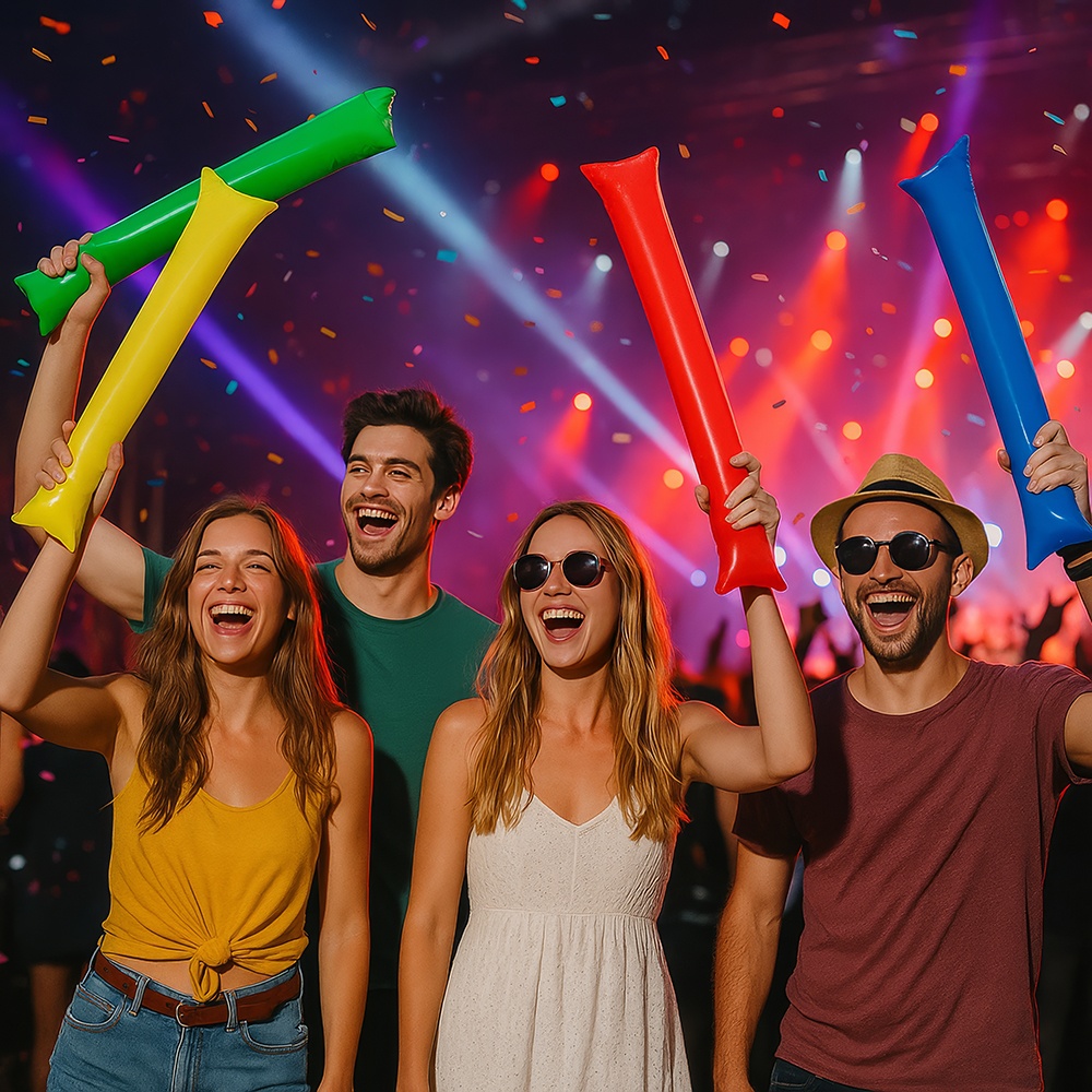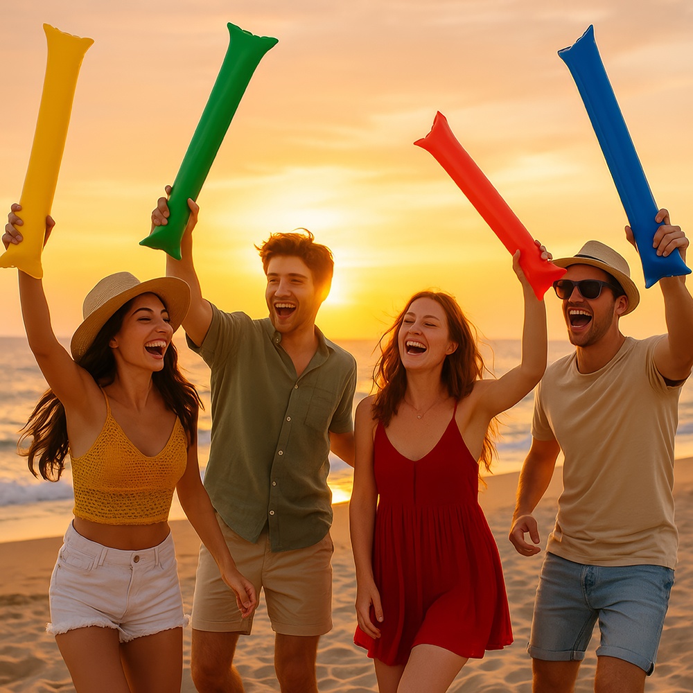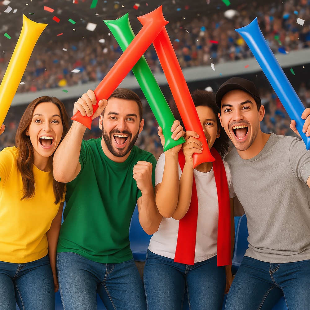 Beleben Sie Ihre Spiele und Feiern mit diesen aufblasbaren Sticks in verschiedenen Farben. Sie sind darauf ausgelegt, Atmosphäre zu schaffen und beim Zusammenprallen einen auffälligen Klang zu erzeugen - ideal für Stadien, Fanklubs, Konzerte und Partys. Schnell aufzublasen und leicht zu tragen, bieten sie während der gesamten Veranstaltung hohen Bedienkomfort. Leuchtende Farben und robustes Material machen sie zur perfekten Wahl, um in der Gruppe Stimmung zu machen.