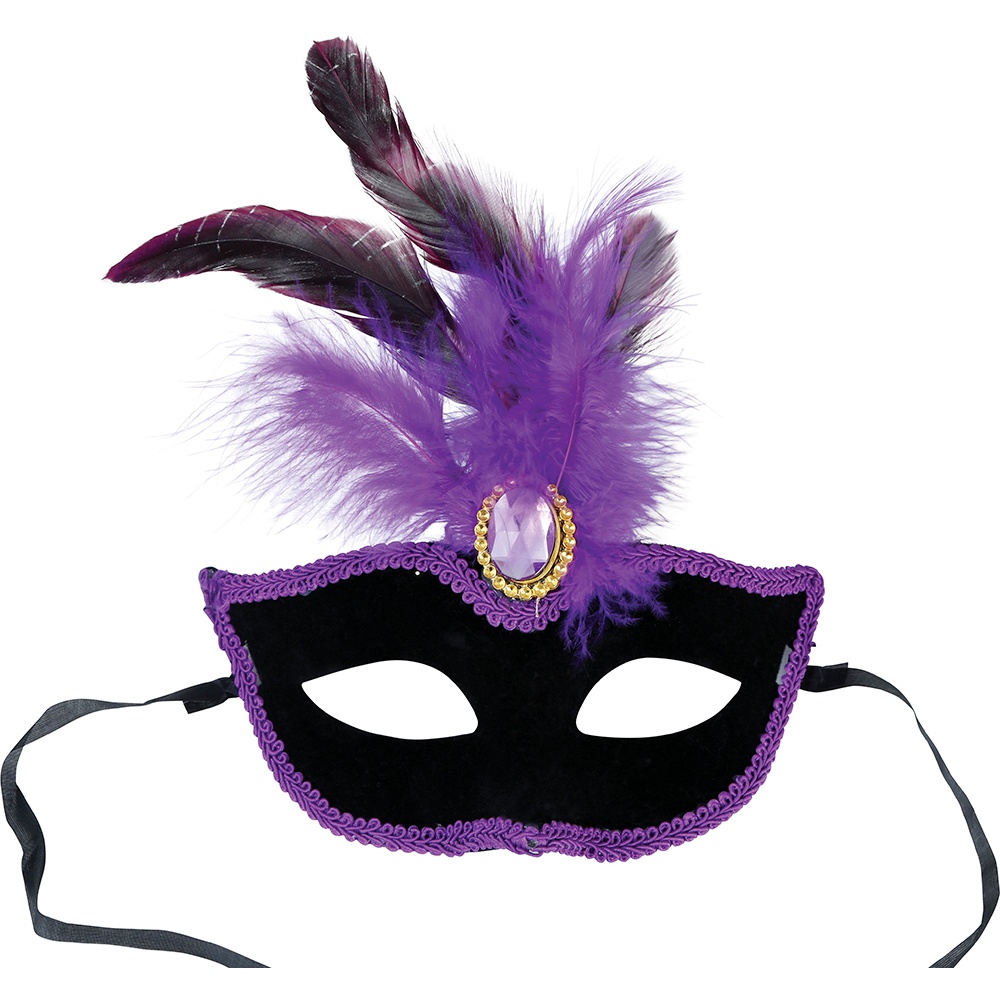 Augenmaske mit Feder und lila Schmuckstein