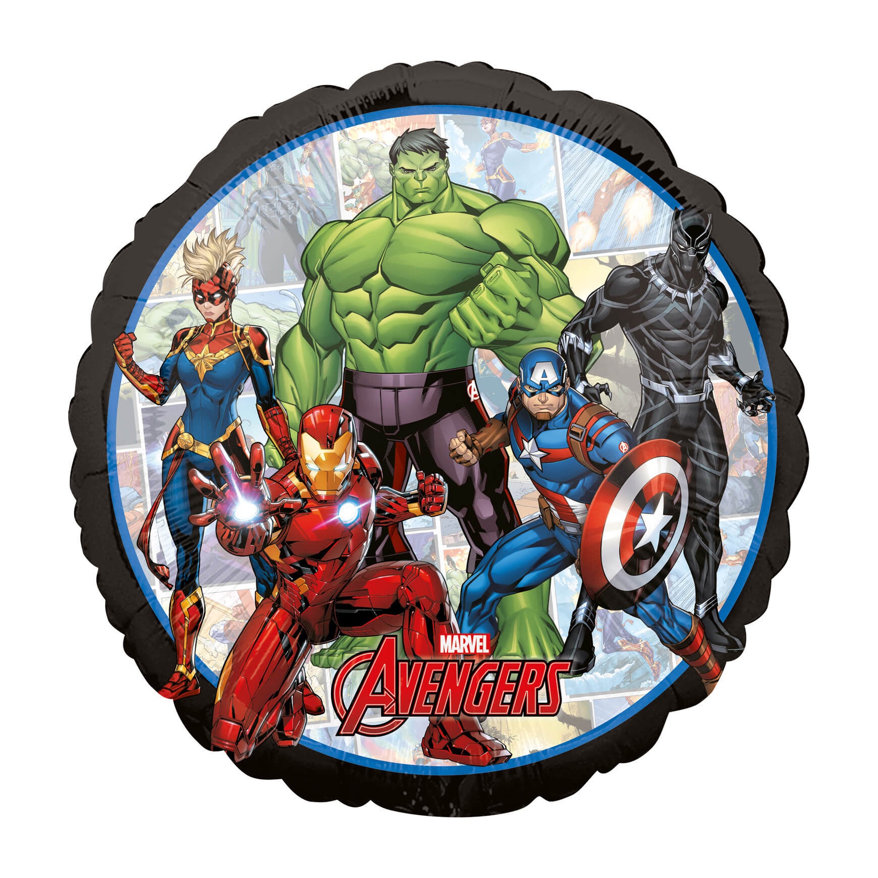 Offizieller Avengers-Folienballon in Vollfarb-Design mit Hulk, Iron Man und Captain America.