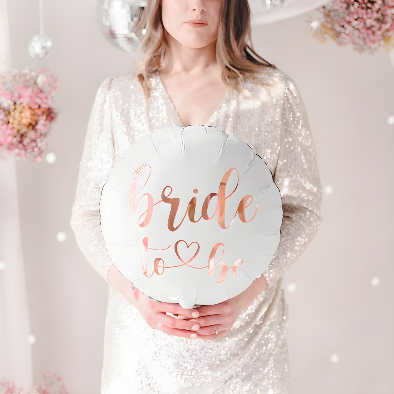 Ein schöner Ballon mit dem Schriftzug Team Bride in der Mitte, den Sie zur Dekoration oder als Geschenk für die Freunde der Braut zu ihrem Junggesellinnenabschied oder ihrer Hochzeit verwenden können.