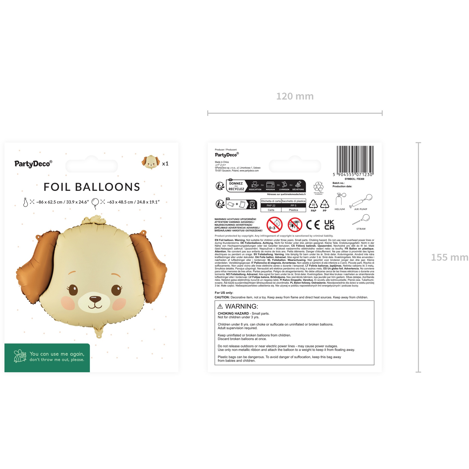 Folienballon mit niedlichem Hundemotiv in Beige? und Brauntönen. Ca. Größe nach dem Aufblasen: 63 x 48,5 cm; Maße ungefüllt: 86 x 62,5 cm. Sie können ihn mit Luft oder Helium befüllen - er verleiht jeder Kinderdekoration einen lustigen und liebevollen Akzent. Leicht und auffällig, perfekt für Candy?Bars, Photocalls und Party?Ecken.