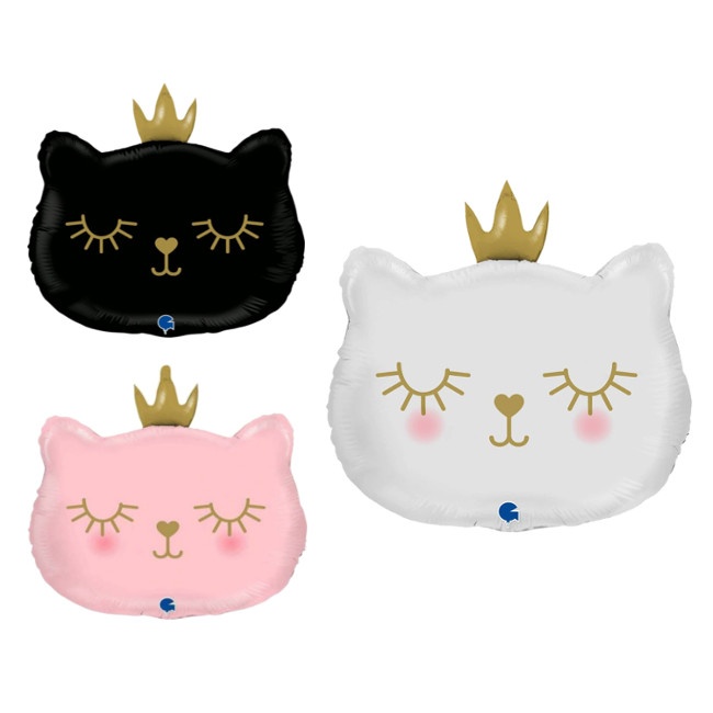 Bezaubernder Ballon mit der Silhouette einer Katzenprinzessin mit Krone, ideal als Geschenk für kleine Mädchen, die diese kleinen Tiere lieben.