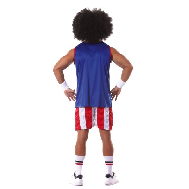 Alles, was Sie brauchen, ist dieses Kostüm für Erwachsene, um ein echter Basketballspieler zu werden. Das Design des Modells erinnert an das Team der Harlem Globetrotters.