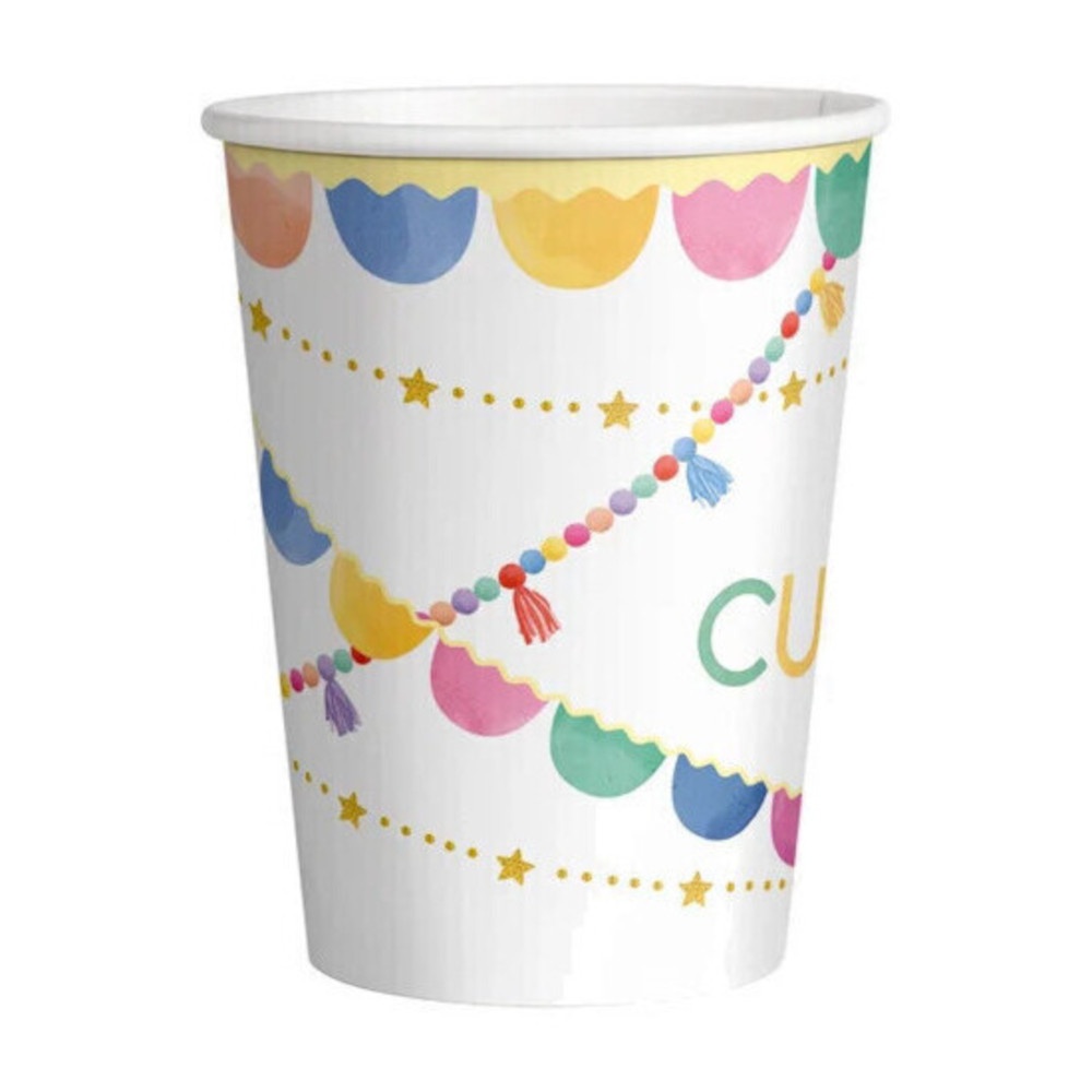 Becher mit 'Feliz Cumpleaños'-Motiv, bunt, 270 ml - 10 Stück