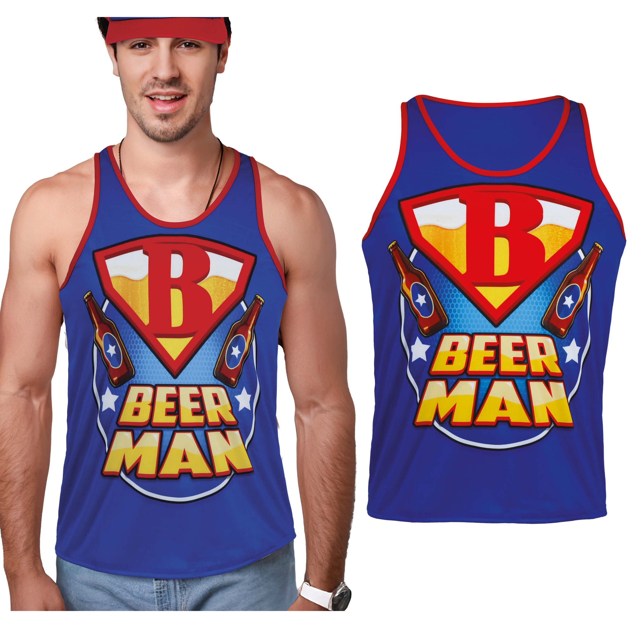 Lustiges ärmelloses Shirt mit dem ikonischen "Beer Man"-Design, das Ihren Zusammenkünften Humor und Farbe verleiht. Der Comic-Print mit Flaschen und auffälliger Typografie fällt auf Partys und bei Bier-Events besonders ins Auge. Der ärmellose Schnitt sorgt für Bewegungsfreiheit und einen ungezwungenen Look - ideal für Erwachsene, die ihrer Garderobe eine originelle und festliche Note verleihen möchten.