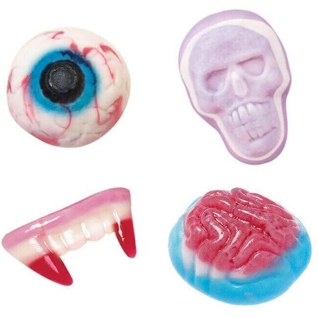 Zutaten: Glukosesirup, Zucker, Gelatine, Wasser, Traubenzucker, Säuerungsmittel (Zitronensäure, Milchsäure), Maisstärke, Geliermittel (Pektine), Invertzuckersirup, Aromen, Überzugsmittel (Carnaubawachs, Bienenwachs), Gemüsekonzentrat (Rettich, Karotte, schwarze Johannisbeere, Tomate, Apfel, Kürbis), Säureregulator (Natriumcitrate), Farbstoffe (E120, E133, E153, E160c).