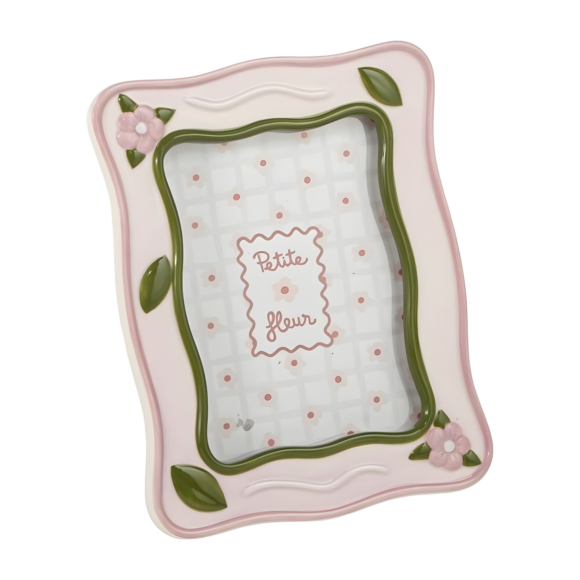 Der Fotorahmen Coquette Flores verleiht Ihrer Einrichtung mit seinem romantischen Vintage-Look in Rosatönen einen zarten Akzent. Die keramischen Blütenapplikationen und die weichen Konturen erinnern an den Cottage-Stil und schaffen eine gemütliche, feminine Atmosphäre. Perfekt, um ein besonderes Foto auf einem Beistelltisch, Regal oder Schminktisch hervorzuheben - auch ein bezauberndes Geschenk für Liebhaberinnen und Liebhaber romantischer Dekoration.