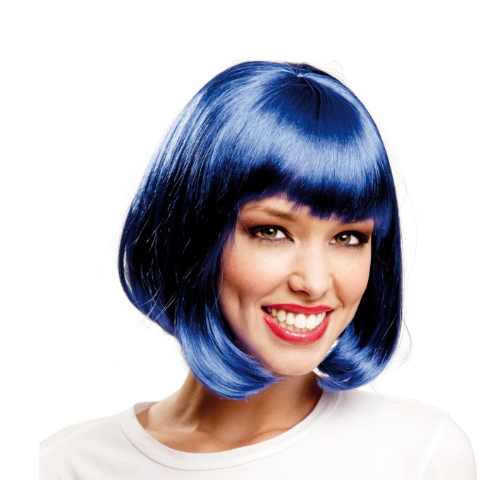 Elektrisch blaue, mittellange Perücke mit Fransen und abgerundeten Enden, die Ihrem Look ein sehr auffälliges Aussehen verleihen wird.