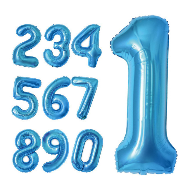 Blauer Metallic-Zahlenballon, 1 m - 1 Stück