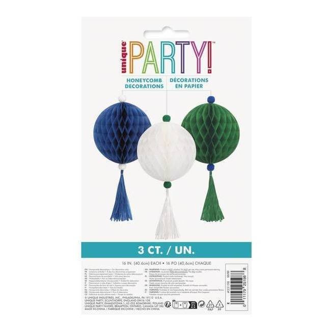 Blauer, weißer und grüner Kugelnest-Anhänger 40,6 cm - 3 Stück