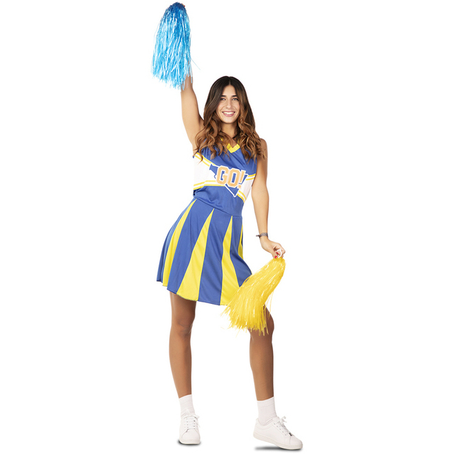 Blaues und gelbes Cheerleader Kostüm für Frauen