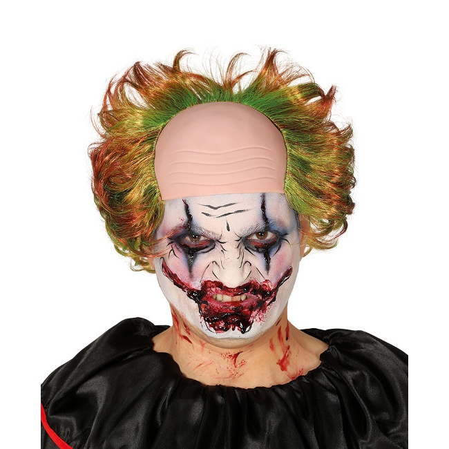 Sie besteht aus einer Latexglatze mit Haaren an den Seiten in einer Kombination aus Grün und Rot, die wie ein blutiger Effekt wirkt.