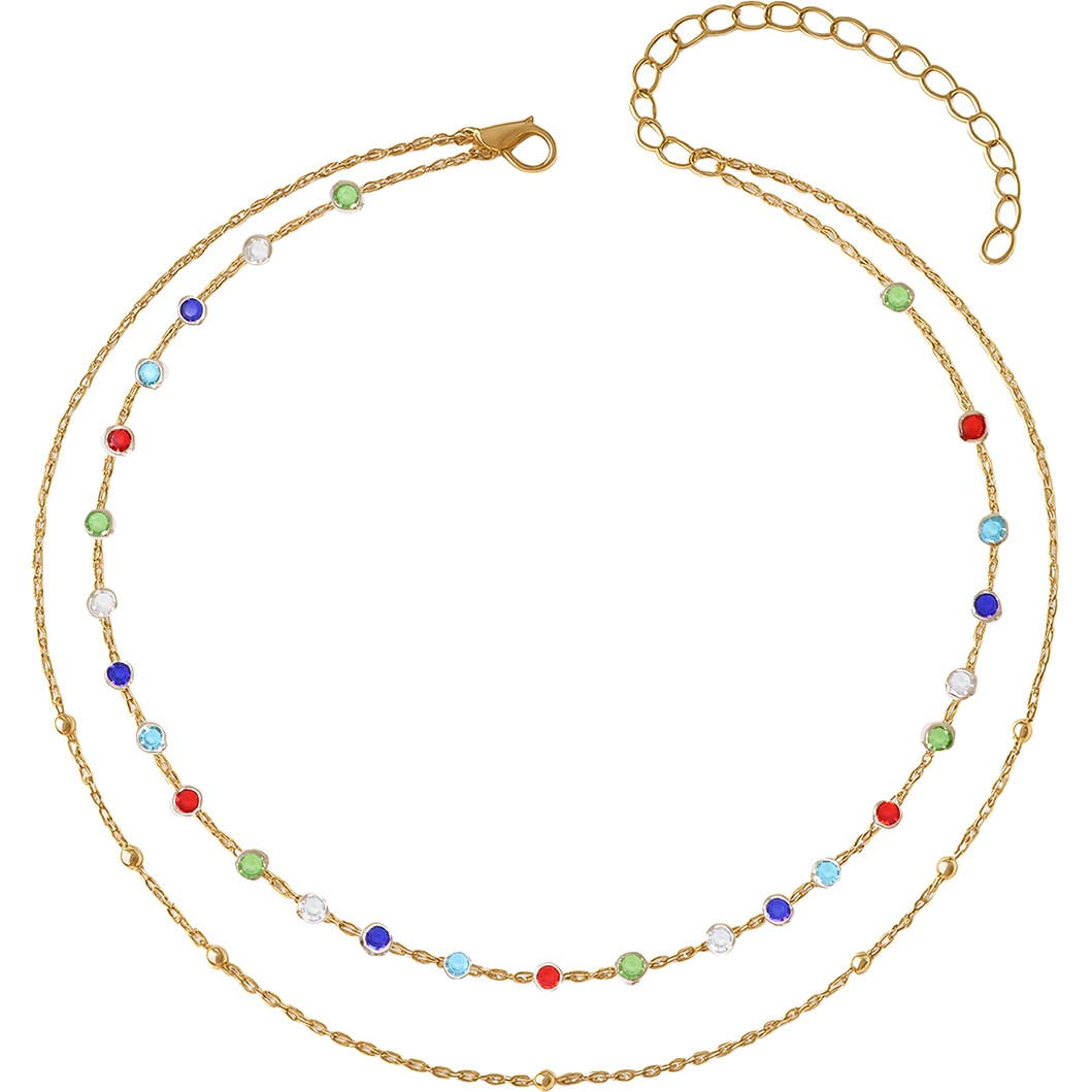 - Boho-Doppelketten-Design mit bunten Steinen für ein auffälliges, feminines Finish.