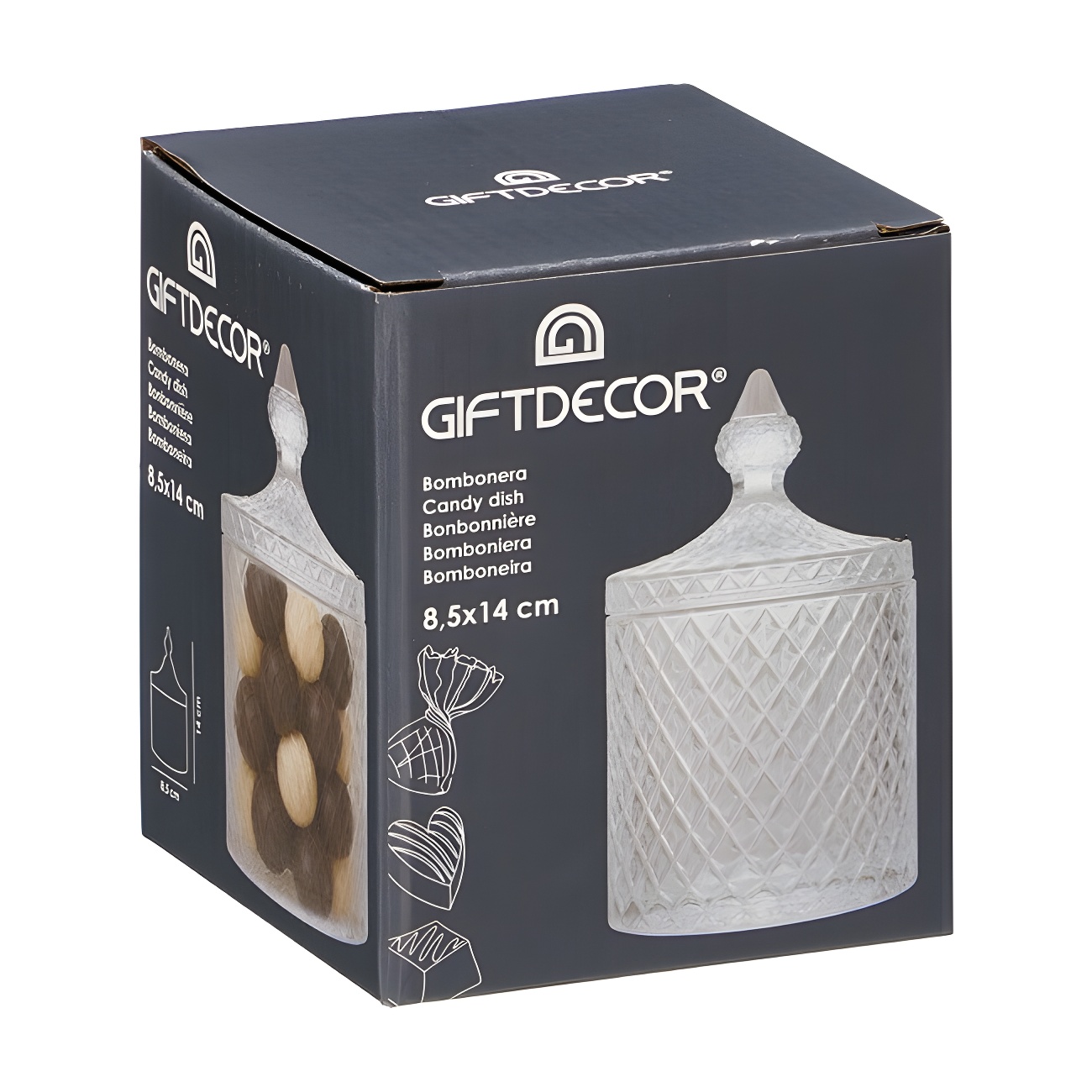 Bonbonniere, 14 x 8,5 x 8,5 cm, transparent mit Rautenmuster