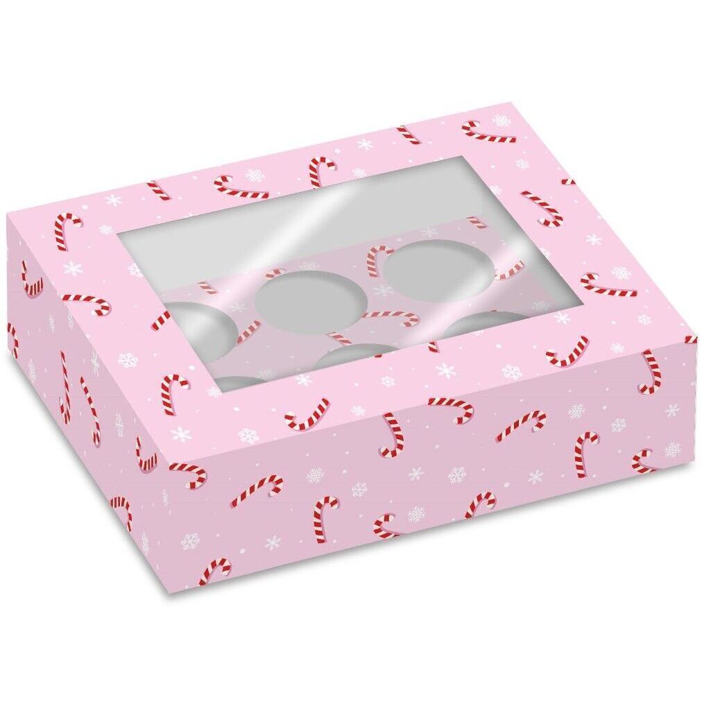 Box für 6 Cupcakes mit Zuckerstangenmotiv - 2 Stück