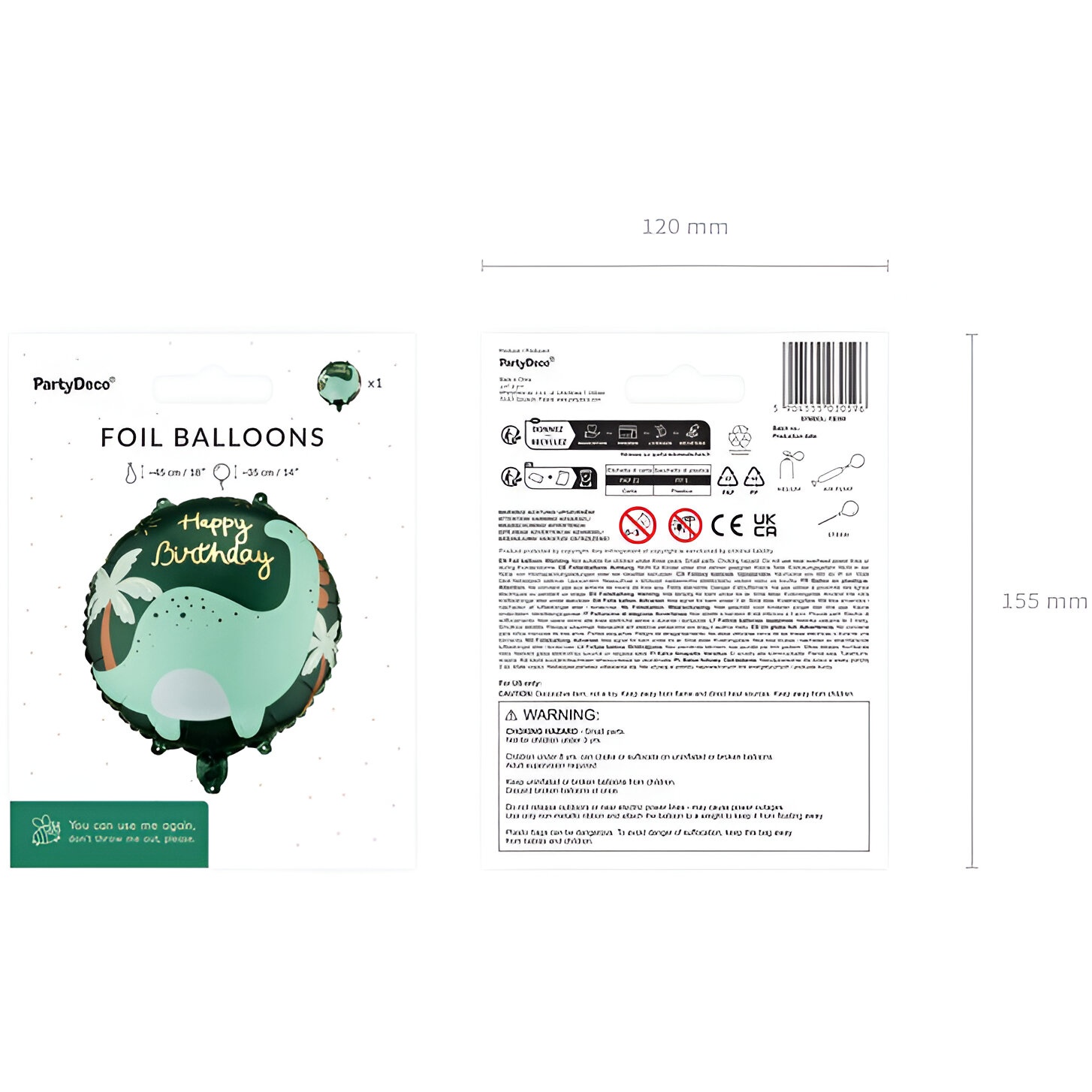 Folienballon mit Brontosaurus-Motiv und dem Schriftzug "Happy Birthday", konzipiert, um Ihre Kindergeburtstagsdekoration stimmungsvoll zu ergänzen. Die gemischten Farben und der glänzende Effekt verleihen der Dekoration eine fröhliche, verspielte Note. Maße vor dem Aufblasen ca. 45 x 45 cm, nach dem Aufblasen ca. 35 x 35 cm. Der Ballon kann mit Luft oder Helium gefüllt werden und eignet sich sowohl als Tischdeko als auch zum Aufhängen in Girlanden.