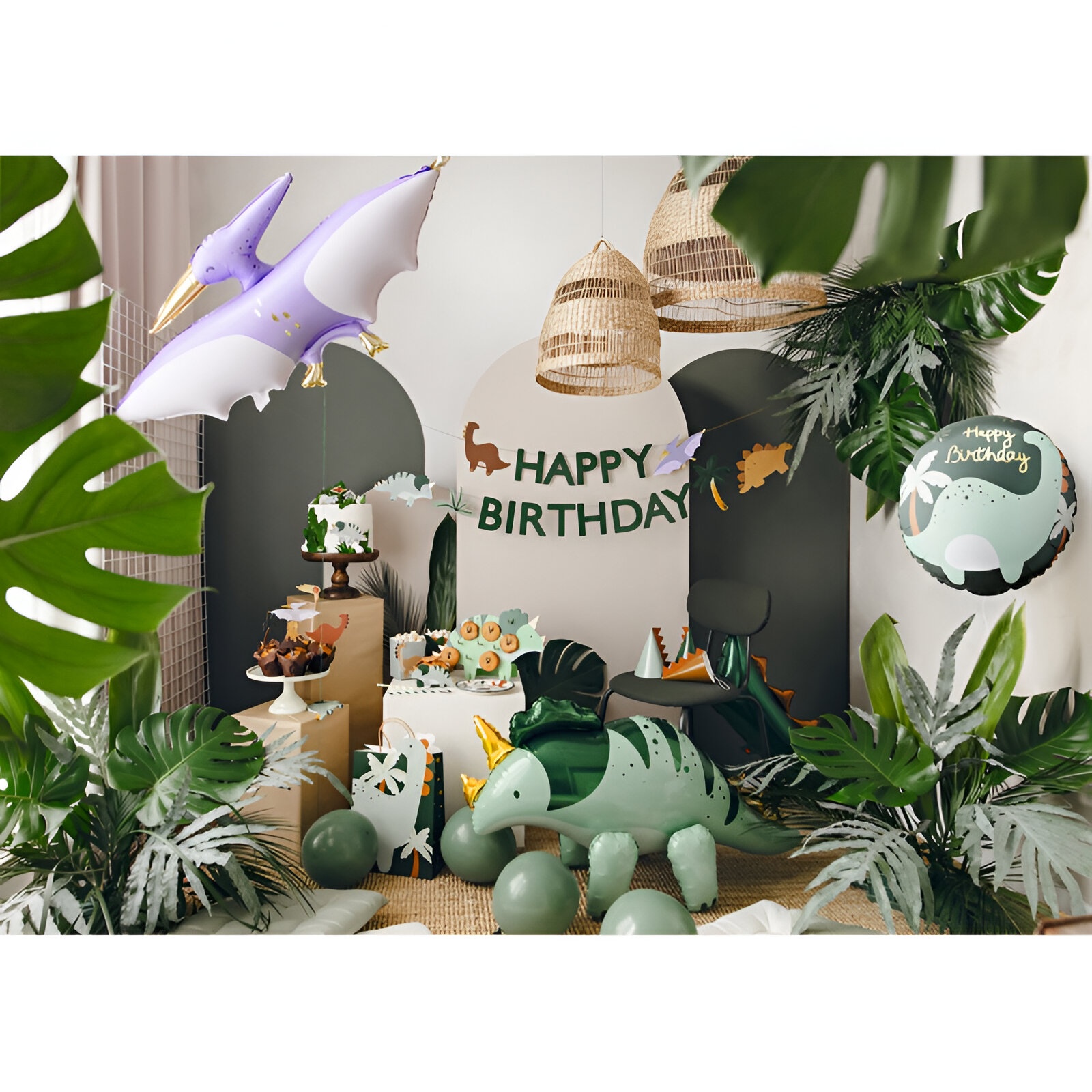 • Themendekoration: Brontosaurus-Design mit der Aufschrift "Happy Birthday" - ideal für Kindergeburtstage.
