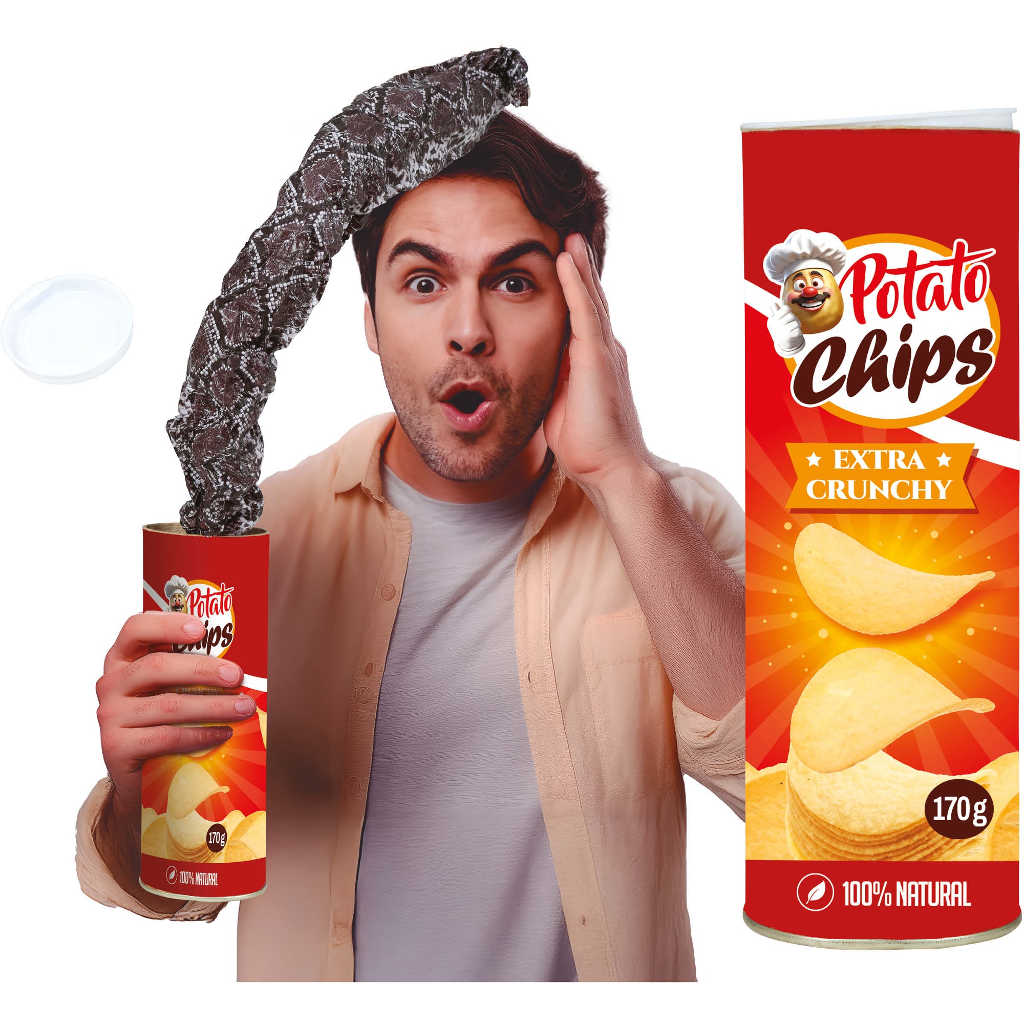Scherz-Chipsdose mit 20 cm Überraschungsschlange.