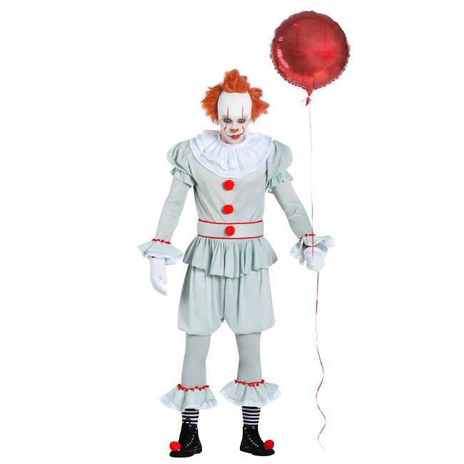 Dieses Kostüm erinnert an den berühmten Clown aus Horrorfilmen, mit dem man sich an Halloween verkleiden kann.