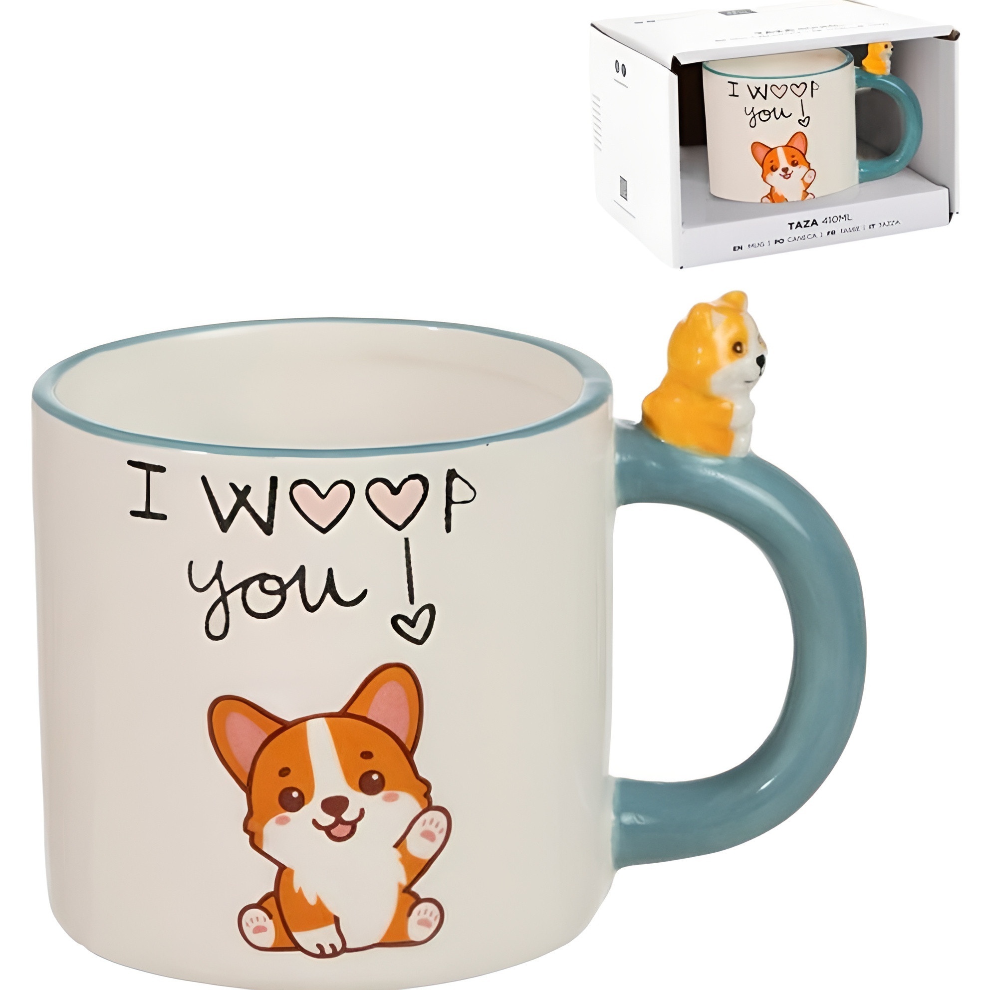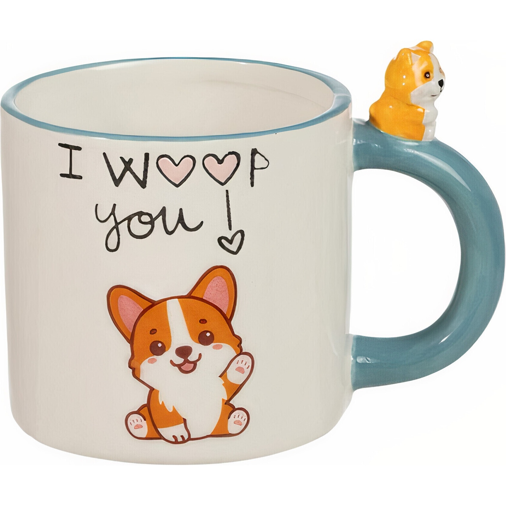 • Niedliches Design mit Corgi-Illustration und einer 3D-Figur am Henkel, das optisch auffällt.