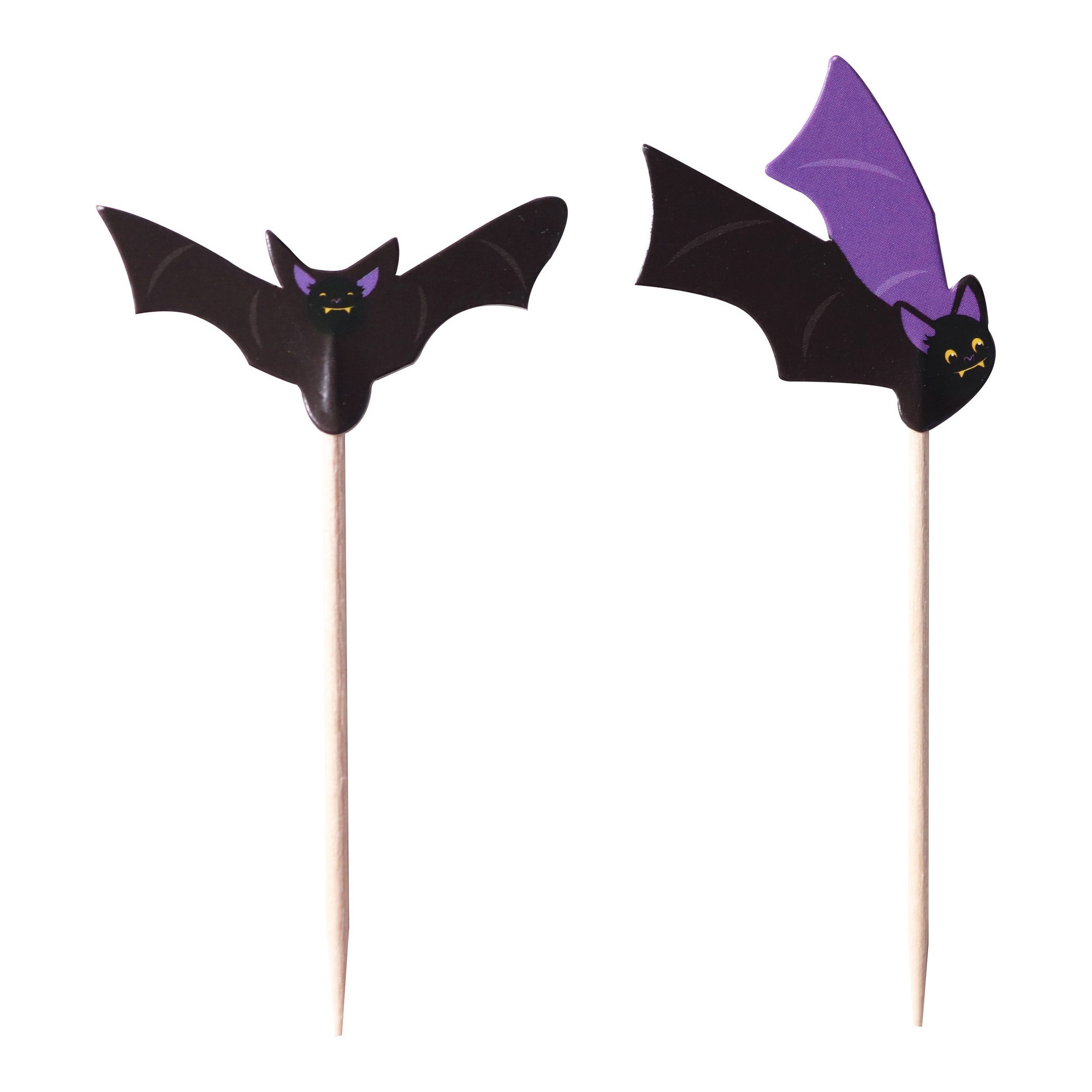 Cupcake-Kapseln mit Fledermaus-Picks - 24 Stück.